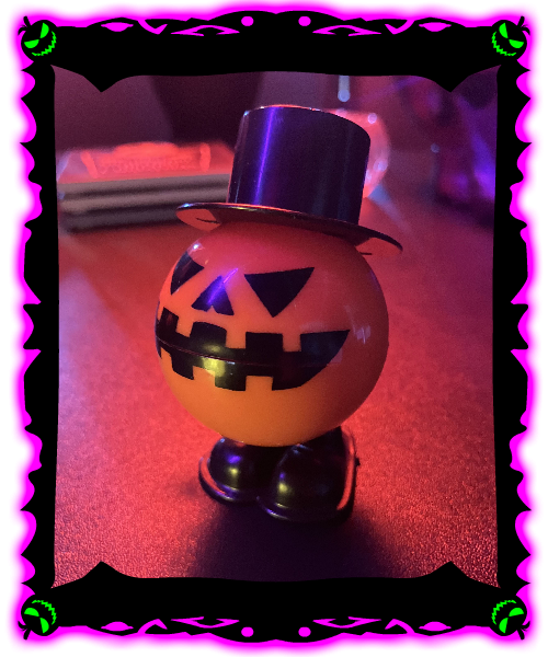 | Not related to the evil 'Punkins' you may see around the Spookeasy, Mayor Pumpkin is actually both the bartender and the mayor! However, we didn't vote for him. He just kind of showed up one day and said he was in charge. But he also mixes up a mean Pumpkin Spice Martini, so we'll keep him around. He is a very happy-go-lucky wind-up toy who has decided he is the mayor. |